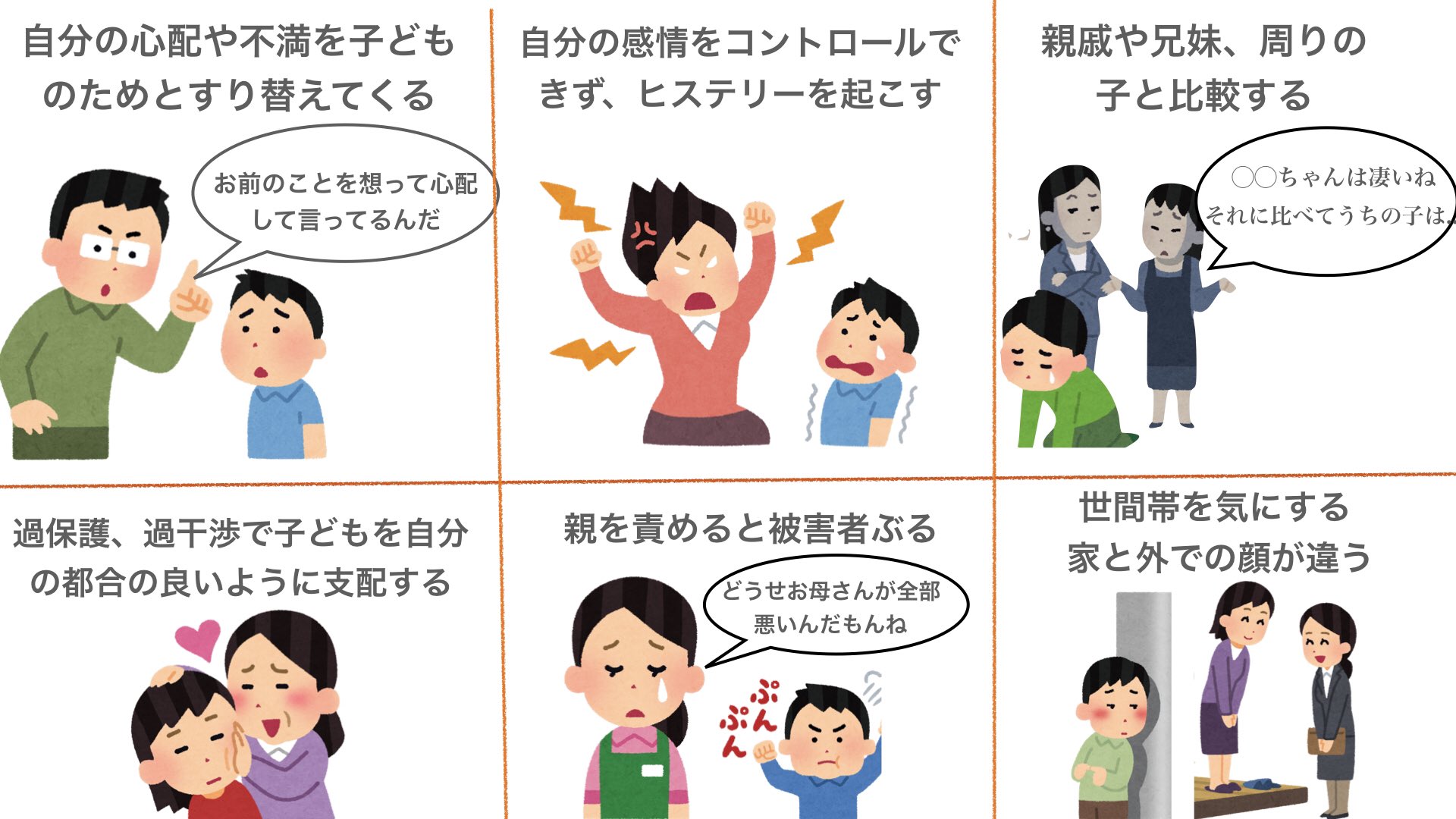 しん 毒親あるあるをイラストにしてみました ちなみにうちの親はこれ全部当てはまっています 皆さんのうちはどうでしょうか T Co Dx9b0guwne Twitter